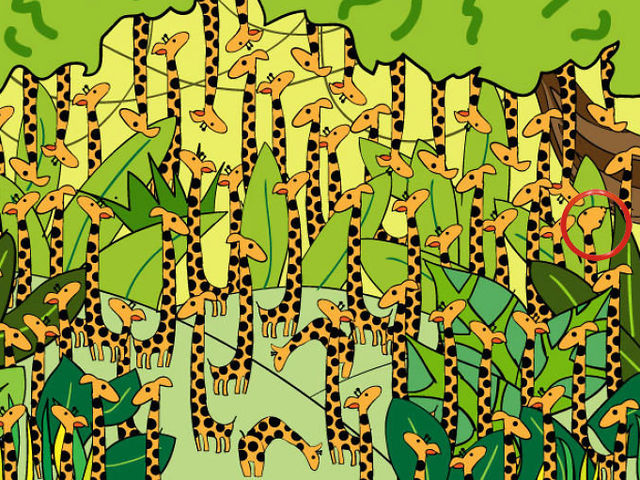 На второй картинке попробуйте отыскать змею, затерявшуюся среди жирафов.