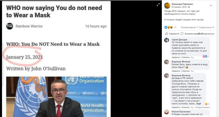 Издание отмечает, что это не первая манипуляция с использованием этого документа. Ранее сторонники теории заговора интерпретировали руководство по ношению масок как признание опасности их использования.