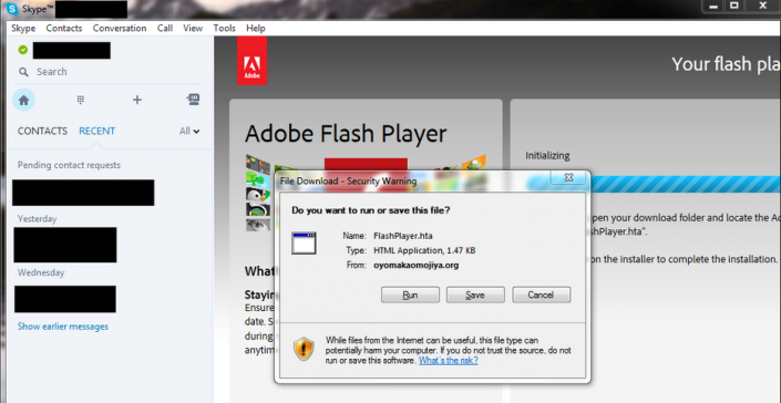 Пользователям Skype угрожает вымогательское программное обеспечение, которое распространяется через фальшивое обновление Adobe Flash Player, сообщает Securitylab.ru.