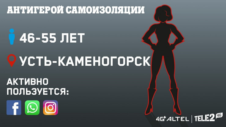 При этом портрет антигероя выглядит следующим образом: житель города Усть-Каменогорска мужского пола в возрасте от 18 до 25 лет, активно пользующийся WhatsApp. В эту же категорию попадает и женщина из Усть-Каменогорска в возрасте от 46 до 55 лет, активный пользователь WhatsApp, Instagram и Facebook.