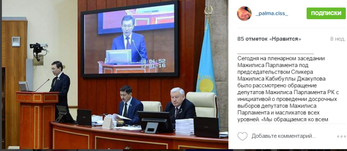 Этот аккаунт ранее назывался mazhilis_kz, в Instagram размещались фото с пленарных заседаний с кратким описанием. К примеру, на одном из последних фото - рассмотрение обращения депутатов с инициативой о проведении досрочных выборов в Мажилис.