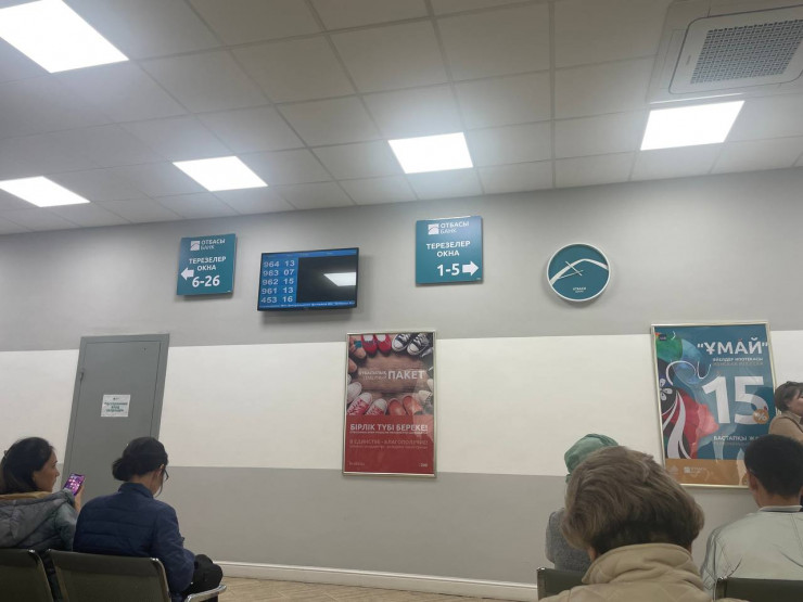 Разобрав номерки, люди сразу разошлись, часть ушла из банка, часть осталась, заняв свободные места. Прием заявок по ипотеке "Умай" шел на втором этаже, но там не работало электронное табло. Сначала некоторые подходили к администраторам и просили включить табло, однако затем подошел охранник и в грубой форме потребовал всех собравшихся спуститься на первый, сказав: "Вы все равно тут не увидите свою очередь". Собравшиеся решили, что табло, скорее всего, отключили намеренно, чтобы люди не скапливались в отделе приема заявок и не создавали шум.