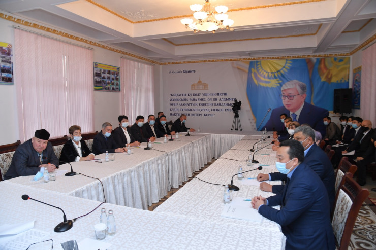Традиционно глава региона встретился с толебийцами, среди которых были аксакалы и ветераны района, председатели этнокультурных объединений и молодежь. На неформальной встрече акимом области были озвучены направления исполнения поручений Президента Касым-Жомарта Токаева, новые планы по развитию государства.