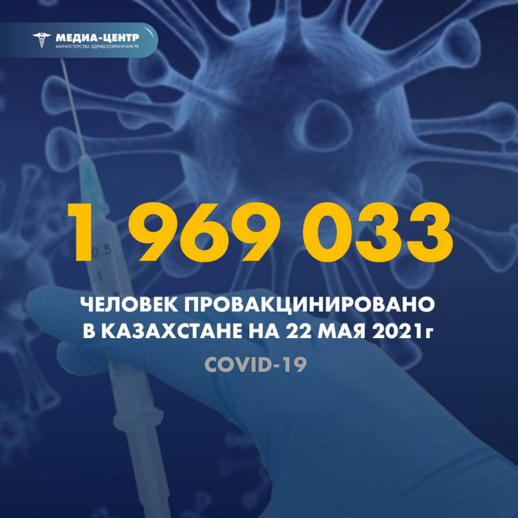 Согласно данным Минздрава, на 22 мая провакцинировано первой дозой вакцины 1 969 033 человека. Вторым компонентом на сегодня привито 903 225 человек.