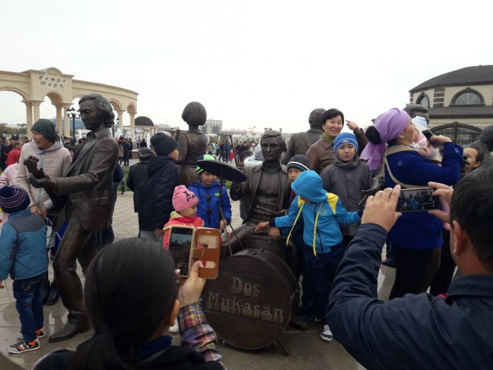 В парке, помимо прочего, был установлен памятник музыкальному ансамблю "Дос-Мукасан", на открытии которого присутствовали сами музыканты. По проекту на площади в 3,5 гектара высажено 750 деревьев.