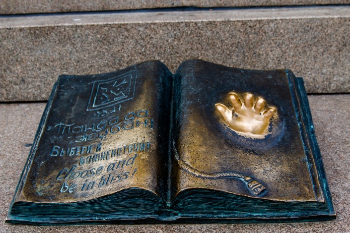 Бронзовая книга с отпечатком ладони Президента РК. В книге написано: "Выбирай и блаженствуй". Фото © Жасулан Нуркасымов