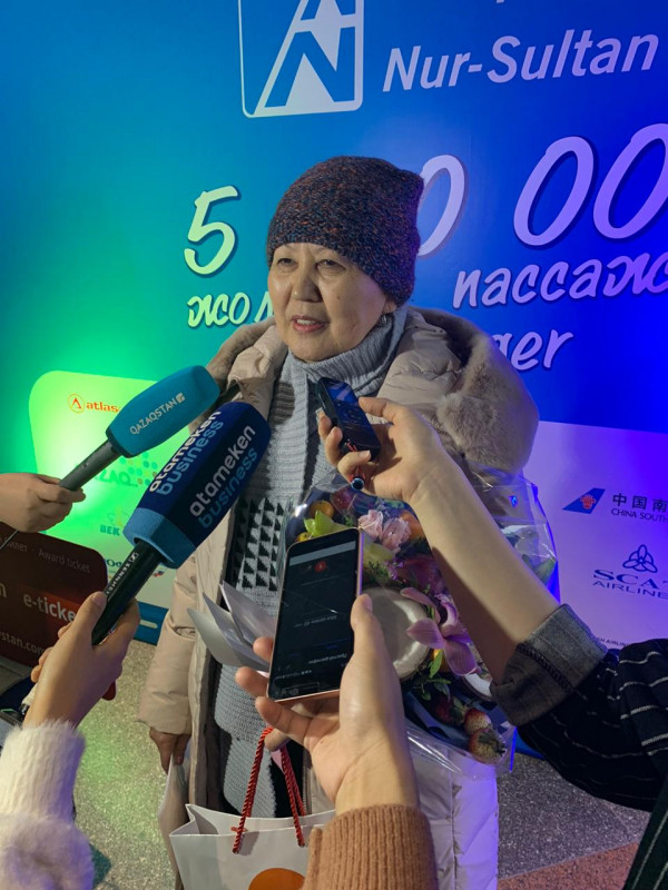 Почетным пассажиром стала Зейнеп Нургазина, прилетевшая из Павлодара. Женщина работает воспитателем в детском саду.