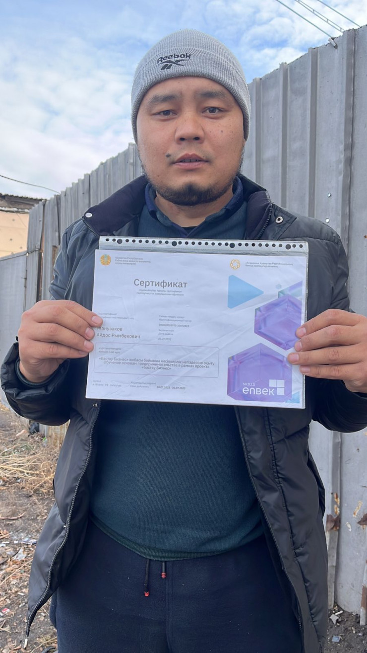 "Мы работаем не первый год. У меня есть дорогостоящий аппарат, который с помощью компрессора подает раствор на верхние этажи зданий, что позволяет быстро и качественно производить стяжку полов. Я обеспечиваю работой двух человек, – говорит Айдос. – На грантовые средства приобрел комплектующие к своему аппарату, они дорогие. Теперь мы можем работать более производительно".
