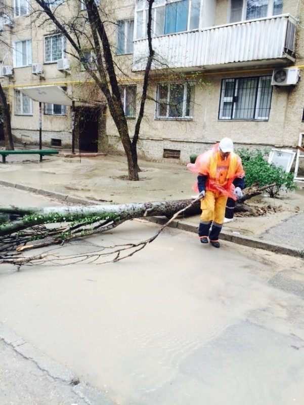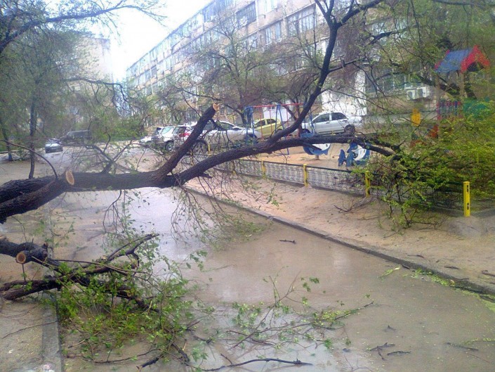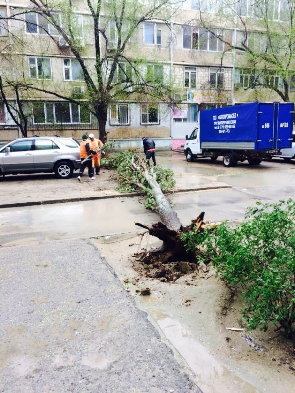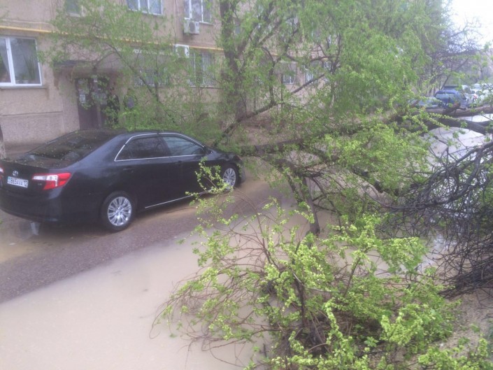 "По Актау работа по ликвидации последствий обильных осадков ведется на 7 участках: "Желтый рынок" 32 микрорайон,  КГТУИ им. Ш.Есенова, ТЦ "Олжа" 30 микрорайон, территория 15 дома 28 микрорайон, 28 "а" Бизнес-центр "Аксункар", территория перед ТЦ "Астана" и автодорога между площадью "Ынтымак" и акиматом Мангистауской области. Привлечено 4 единицы спецтехники, 3 мотопомпы. Задействовано 12 человек. Кроме того, в результате сильного ветра возле 28 дома 14 микрорайона упало дерево на автомашину "Тойота Камри", также упало дерево во дворе 25 дома 8 микрорайона. Пострадавших нет. Бригады коммунальных служб выезжают по звонку от жителей, в чьих дворах есть упавшие деревья и их сразу же вывозят", - сообщила пресс-секретарь ДЧС Мангистауской области Гульнара Ходжабекова.