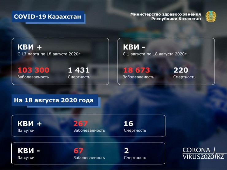 Всего с 1 августа зарегистрировано: заболевших - 18 673, летальных случаев - 220", - говорится в сообщении.