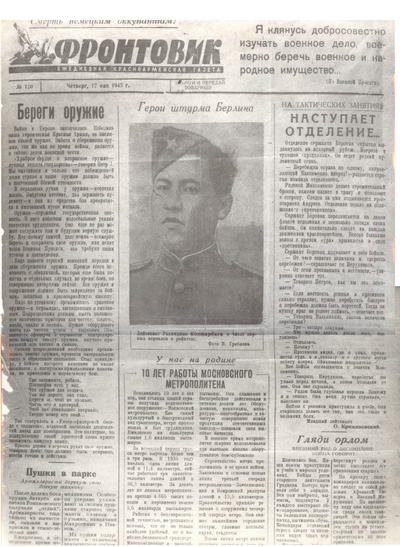 Рядовой Григорий Булатов, сын полка. В 1945 году ему было 19 лет.