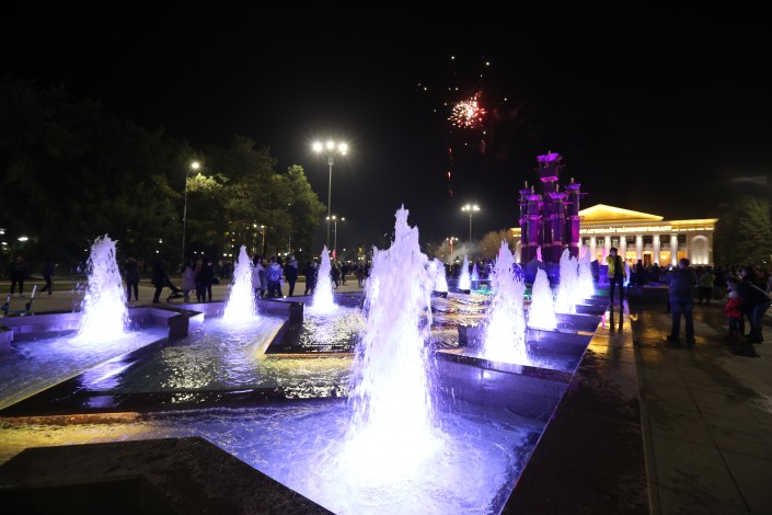 Аким области вместе с горожанами дали обратный отсчет запуску фонтанов. Под общее ликование все семь из них включились одновременно, сопровождаясь ярким разноцветным фейерверком.