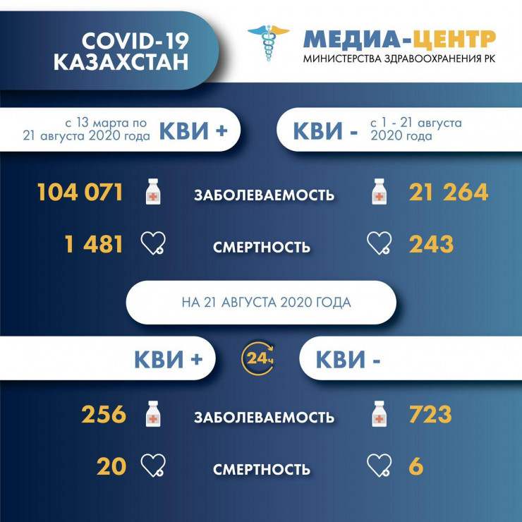 Сообщается, что с 1 августа диагноз "коронавирусная пневмония" поставили 21 264 казахстанцам. Речь идет о пневмонии неуточненной этиологии при клинических признаках коронавирусной инфекции и отрицательном ПЦР-тесте. С 1 августа ее считают разновидностью коронавируса.