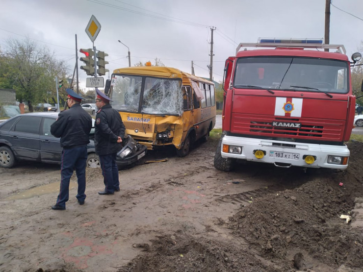 "На пересечении улиц Елгина–Щедрина произошло столкновение пожарной автомашины марки КамАЗ со школьным автобусом марки ПАЗ-32053-70, от удара автобус совершил наезд на припаркованную автомашину марки Volkswagen. В результате дорожно-транспортного происшествия 6 несовершеннолетних обратились за медицинской помощью", - сообщили в пресс-службе ДП Павлодарской области.