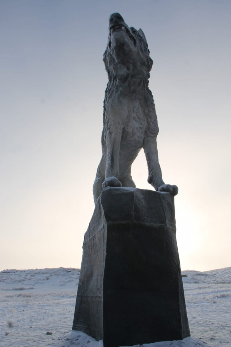 В Улытауском районе Карагандинской области установили девятиметровую скульптуру волка, передает корреспондент Tengrinews.kz.