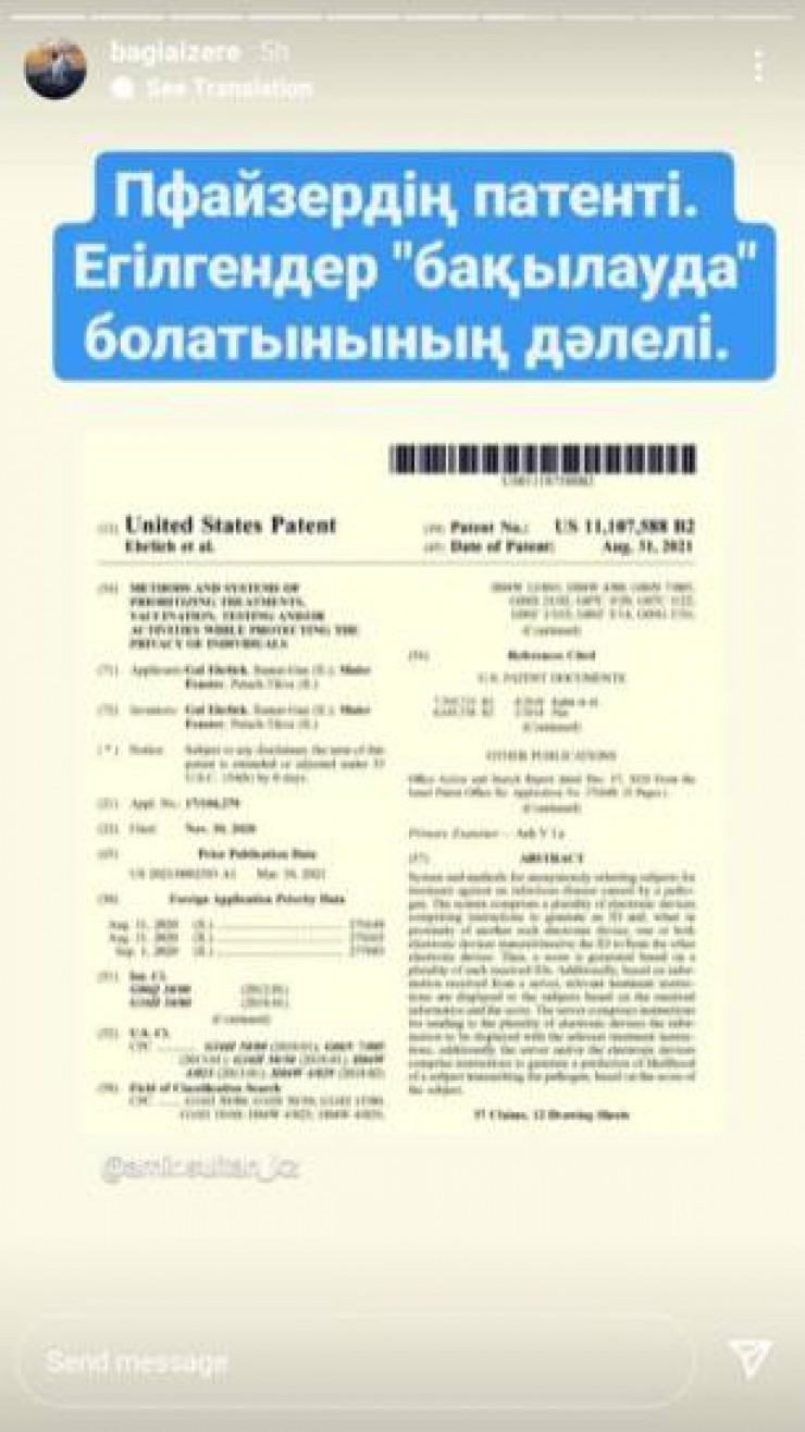 Әлеуметтік желілерде қазақстандықтар Pfizer вакцинасында бақылау құрылғылары бар екенін дәлелдейтін патентті талқылап жатыр. Құжатта олардың қалай жұмыс істейтіні нақты сипатталған және ол бұрын конспирологиялық болып саналған теорияларды дәлелдейді екен.