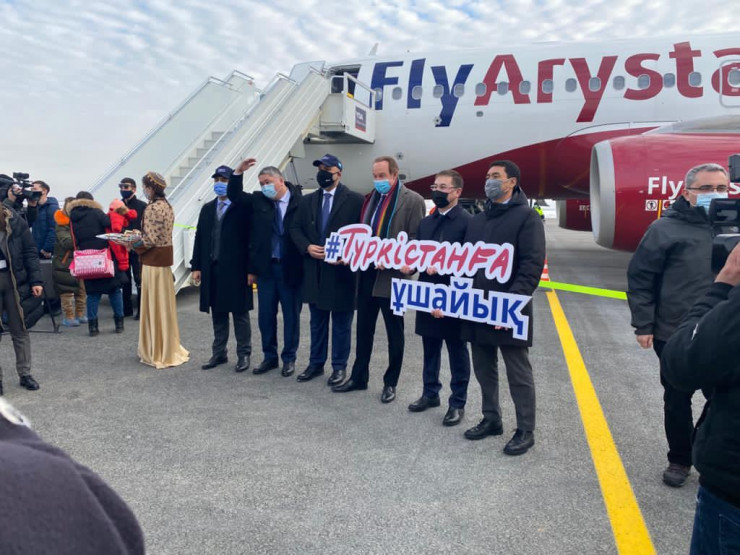 "Из нового международного аэропорта Туркестана на первом этапе казахстанскими авиакомпаниями Fly Arystan, Qazaq Air и SCAT будут выполняться ежедневные рейсы в Нур-Султан и Алматы. В дальнейшем в качестве духовного центра тюркского мира, Туркестан будет соединен с другими областными центрами Казахстана.