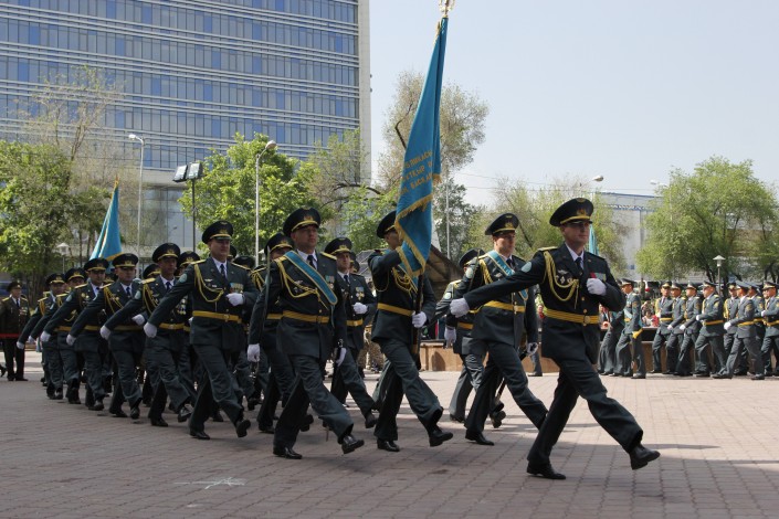 После на площади Абая прошли показательное выступление с оружием курсантов службы Государственной охраны и маршировка других военнослужащих. Всего в мероприятии приняли участия более 500 военнослужащих. Праздник завершился выступлением артистов. Организатором мероприятия выступил Департамент по делам обороны Алматы.