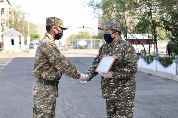 В честь профессионального праздника призванные на сборы военнообязанные были отмечены благодарственными письмами акима области тем, кто показал пример патриотизма и способствовал поддержанию общественного порядка в этот ответственный для страны период.
