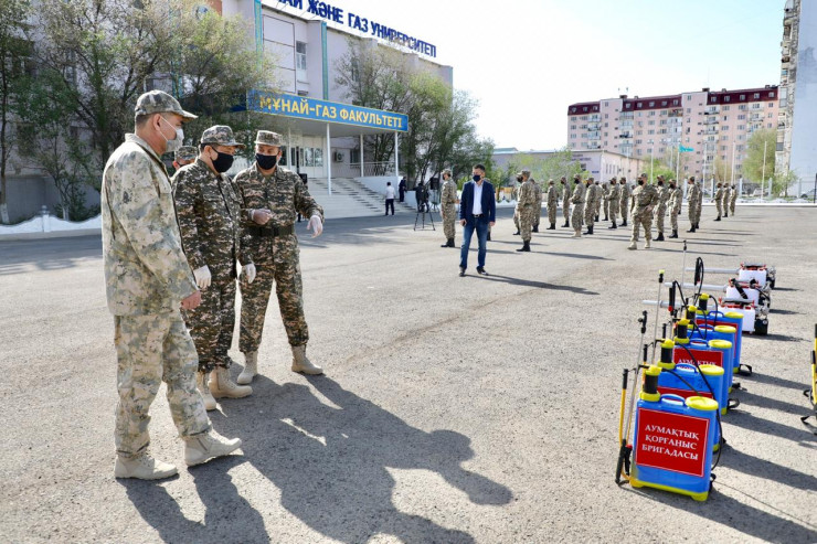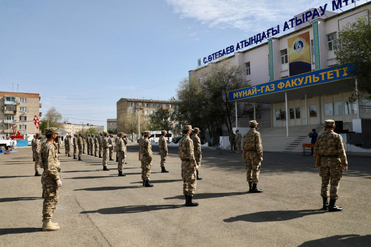 Напомним, 10 апреля постановлением акима Атырауской области 68 военнообязанных были призваны на специальные сборы. Они были разделены на три группы: медицинский персонал, взвод радиационной, химической и биологической защиты и стрелковый взвод. Основные задачи военнообязанных - это участие в работе регионального оперативного штаба по предотвращению распространения коронавируса, несение службы на блокпостах, проведение дезинфекции территорий города, охрана объектов с выявленными очагами инфекции и медицинское обеспечение.