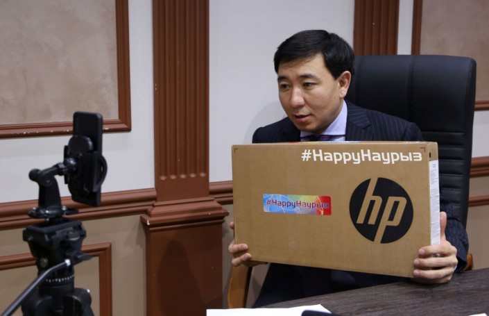 Аким города зачитал письмо 16-летнего Ануара Кадырова из многодетной семьи. Подросток попросил подарить ему и его братьям и сестре на Наурыз мейрамы компьютер. Жаксылык Омар сказал, что в ответ на письмо мальчика с коллегами решили подарить ноутбук и запустить челлендж #HappyНаурыз.