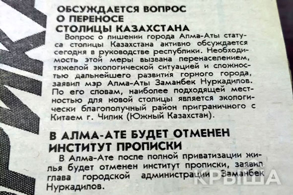 В марте 1992-го кинотеатры начинают показ "Крестного отца", а Наурыз мейрамы впервые становится официальным праздником. В это же время на страницах газеты появляется первое упоминание об обсуждении переноса столицы руководством республики. Как можно прочитать, по словам мэра Алма-Аты Заманбека Нуркадилова, это связано с перенаселением, тяжелой экологической ситуацией и сложностью дальнейшего развития горного города. Перенести столицу предлагают в город Чилик.