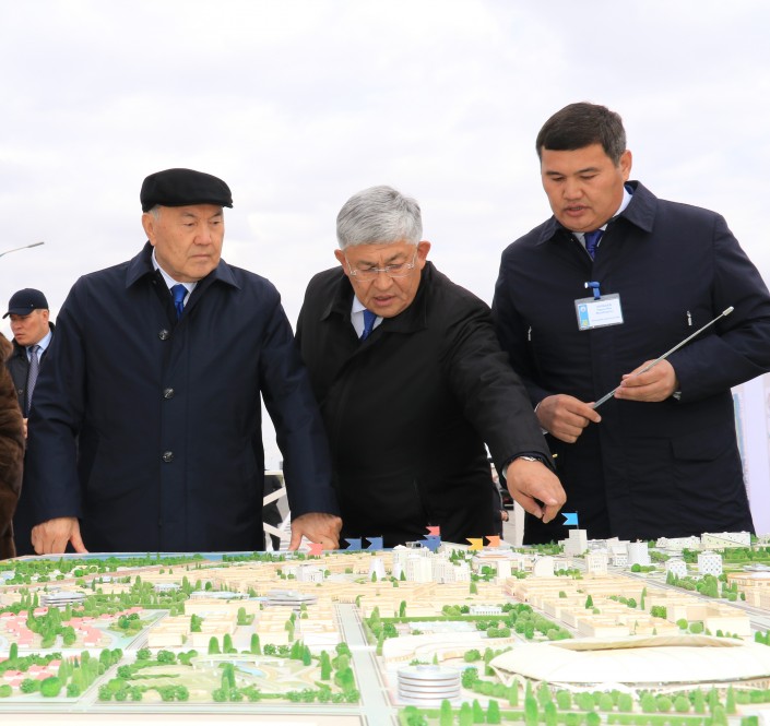 Ознакомление с ходом строительства объектов на левобережной части Сырдарьи. © akorda.kz