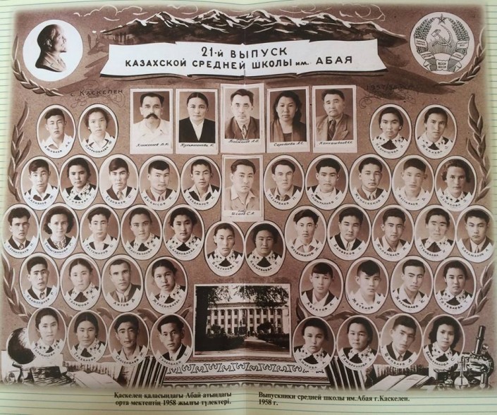 "Сегодня по всей стране прозвенел последний школьный звонок. В честь этого знаменательного дня представляем вашему вниманию фотографию 1958 года. На снимке изображен выпуск учеников казахской средней школы имени Абая в городе Каскелен (Алматинская область - Прим.). По правую сторону от завуча по учебной части Сеитхана Исаева - Нурсултан Абишевич", - говорится в описании к фото.