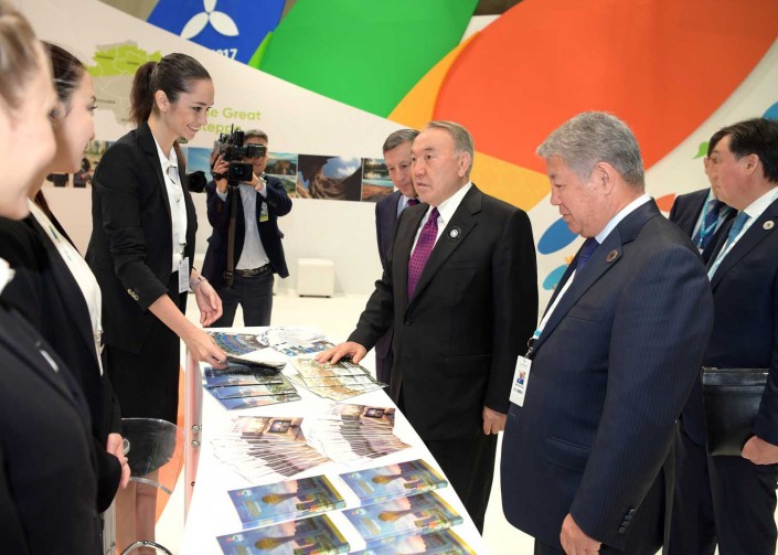 В Абу-Даби Нурсултан Назарбаев посетил выставку Всемирного Саммита "Энергия будущего". Там он ознакомился с павильоном "ЭКСПО-2017".