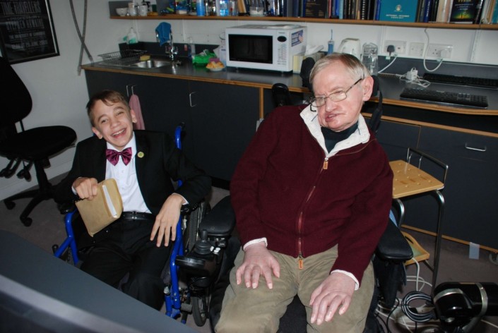 Аға ғалым мен бала ғалымның ұқсастығы - ауыр дертінде. Стивен Хокинг бүйір амио-трофиялық склерозы деген ауыр дертпен өмір сүрсе, тараздық жас ғалымға "церебрал паралич" диагнозы қойылған.