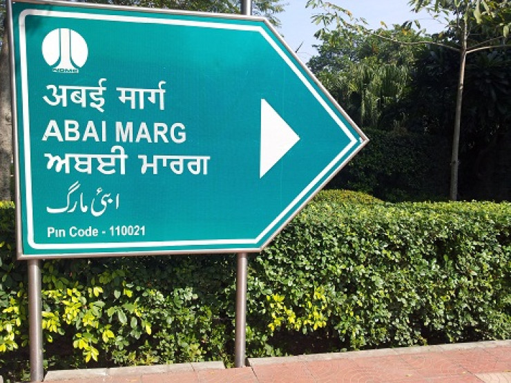 Нью-Делиде қолданылатын тілдік ережелерге сәйкес "Абай Мардж" хинди, ағылшын, пенджаби және урду тілдерінде жазылған. Қазақстанның Үндістандағы елшілігінің хабарлауынша, Нью-Делиде Абай көшесінің болуы Үндістан мен Қазақстан арасындағы тығыз байланысты білдіреді.