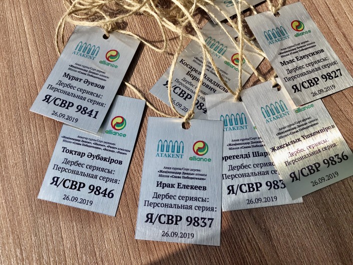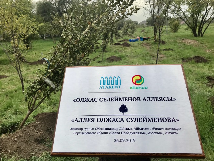 У каждого высаженного дерева есть табличка с выгравированным именем владельца. Представителю высаженной яблони выдали паспорт дерева. Среди них: Владислав Косарев, Мурат Ауэзов, Токтар Аубакиров, Жаксылык Ушкемпиров, Ирак Елекеев, Торегельди Шарманов и Мэлс Елеусизов.