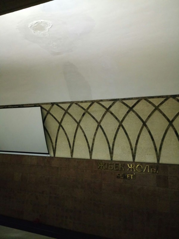 В КГП "Метрополитен" прокомментировали эти снимки. По их данным, следы намокания на станции метрополитена "Жибек Жолы" появились в результате обильных осадков.
