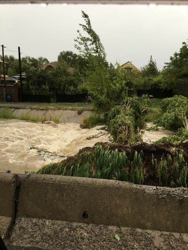 Так, например, из-за сильного урагана дерево упало в реку Большая Алматинка.