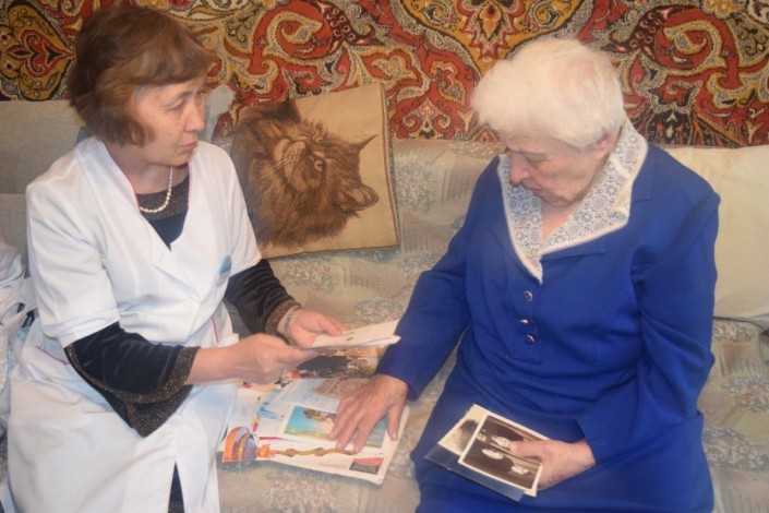 Она более 25 лет наблюдается в поликлинике ВОВ. Медсестра Карлыгаш консультирует бабушку, может прийти и просто измерить ее давление, поскольку у Веры Михайловны ишемическая болезнь сердца и артериальная гипертония.