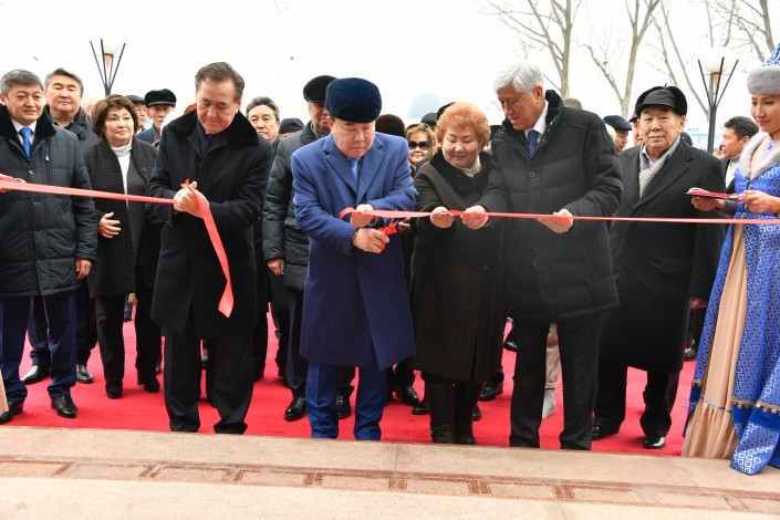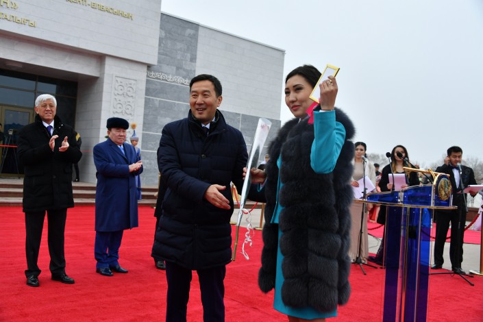 В торжественной церемонии перерезания голубой ленты, ознаменовавшей начало работы историко-культурного центра Первого Президента - Лидера нации "Атамекен", принял участие Болат Назарбаев.
