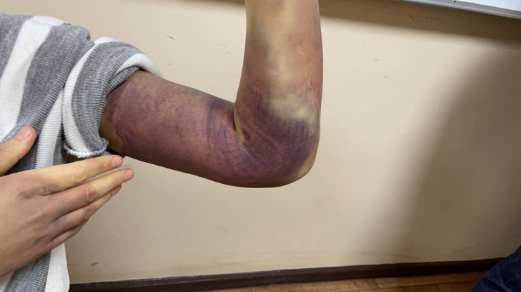 Гематомы на теле девушки, заявившая об изнасиловании. Фото предоставлено пресс-службой ДП Алматы