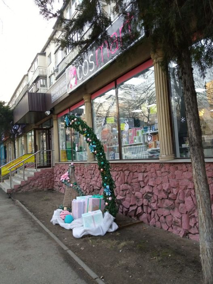 Несмотря на это, Андрей все же собрал фотографии нескольких хорошо украшенных участков, в основном у крупных объектов бизнеса и торговых центров.