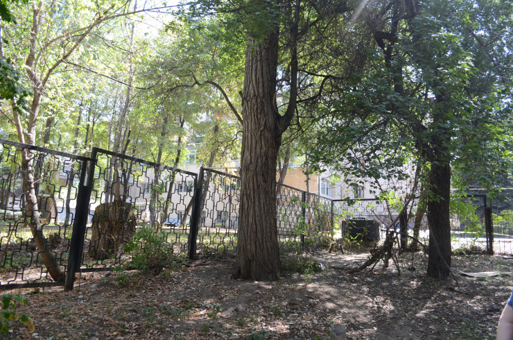 Несколько домов по улице Кажымукана действительно непосредственно примыкают к забору учреждения. Их балконы отделяют от него всего несколько метров тротуара, и если жильцы нижних этажей жалуются, что будут закрыты от солнца и ветра забором, то жители верхних этажей, наоборот, опасаются, что их квартиры будут хорошо видны со двора бывшего пансионата. Они боятся неадекватной реакции пациентов.