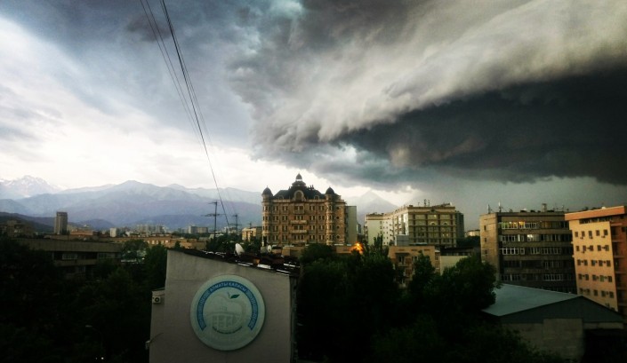 Около 18.00 Алматы накрыла тьма и начался ливень, который сопровождался сильным ветром, передает корреспондент Tengrinews.kz. Алматинцы делятся в соцсетях фотографиями непогоды. Отмечается также, что от сильного ветра падают деревья.