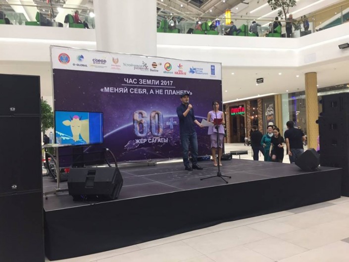 Тем временем в Астане погасла подсветка самых известных зданий, в числе которых "Байтерек", Триумфальная арка и даже резиденция Президента. По данным UNDP Kazakhstan, ПРООН поддержала акцию, прошедшую и в MEGA Silk Way под названием "Час земли 2017 "Меняй себя, а не планету. Таким образом, Астана уже в девятый раз поддержала международную экологическую акцию "Час Земли". По данным "Хабар 24", сотни гостей и жителей столицы в унисон отсчитывали секунды до старта акции в одном из торгово-развлекательных центров, где не только отключили подсветку здания на 60 минут, но и значительно убавили внутреннее освещение.