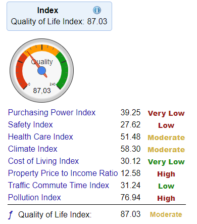 Сайт исследует качество жизни в разных городах мира.
