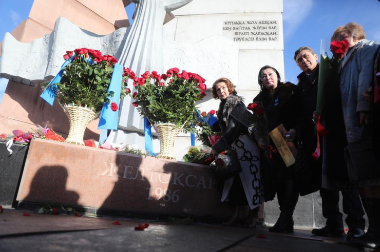 В Алматы прошла церемония возложения цветов к монументу "Тәуелсіздік таңы" в память о жертвах декабрьских событий 1986 года.