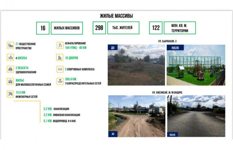 Так, в 2020 году отремонтировали свыше 50 многоквартирных жилых комплексов, а в начале текущего года 400 семей из аварийных ветхих домов получили ключи от новых безопасных квартир.