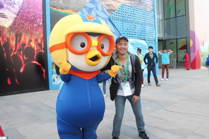До презентации посетителей павильона Южной Кореи встречали герои популярного компьютерного анимационного сериала. И взрослые, и дети не могли удержаться от возможности сфотографироваться с Пороро и его друзьями.