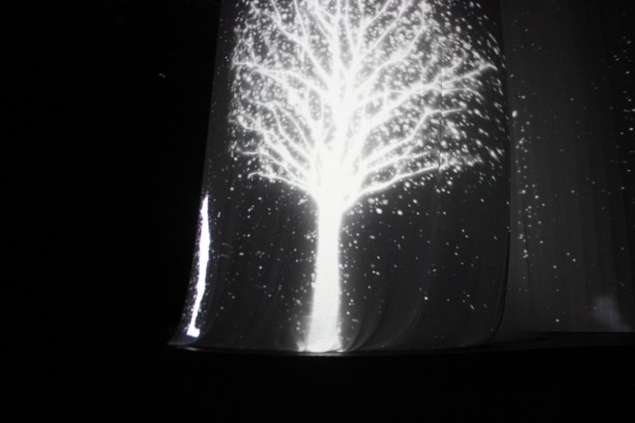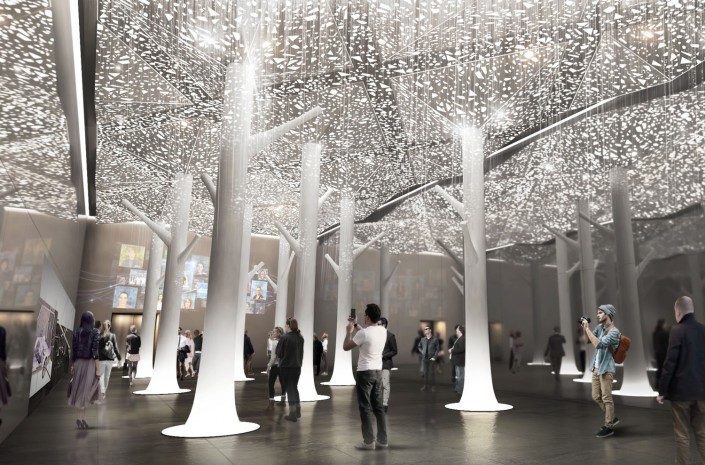 Завершается выставочный зал таинственным лесом. Посетители посредством гаджетов оживляют при помощи света деревья.