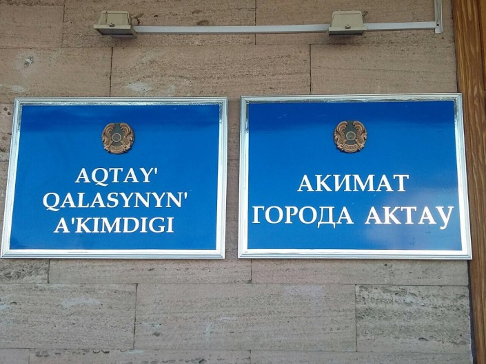Aqtay'. Вывеску в акимате Актау перевели на латиницу
