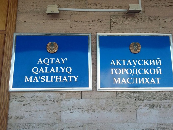 Во исполнение Указа "О переводе алфавита казахского языка с кириллицы на латинскую графику" Президента РК Нурсултана Назарбаева, официальные вывески акиматов городов Актау, Жанаозен, пяти районных акиматов, областного акимата, маслихата Актау на казахском языке переведены с кириллицы на латинский алфавит.