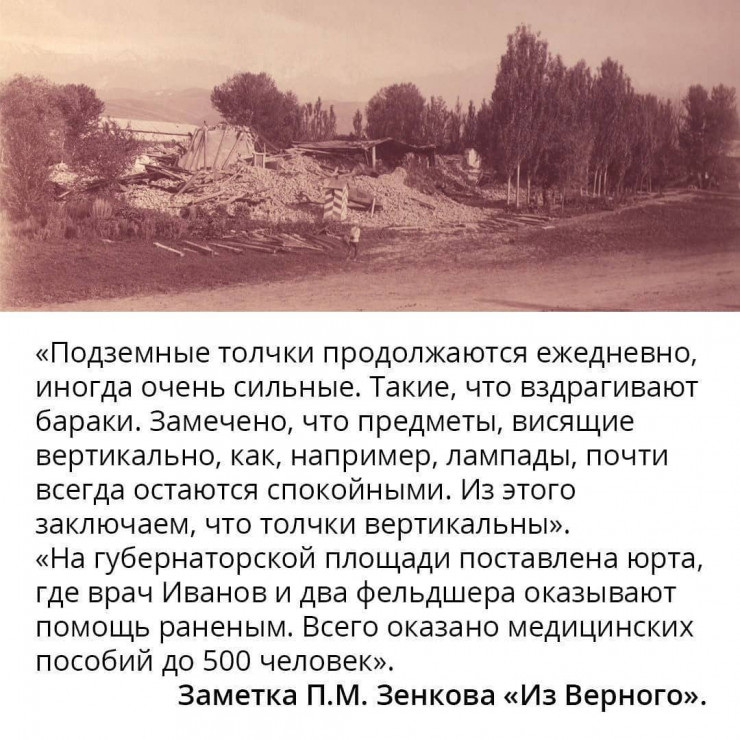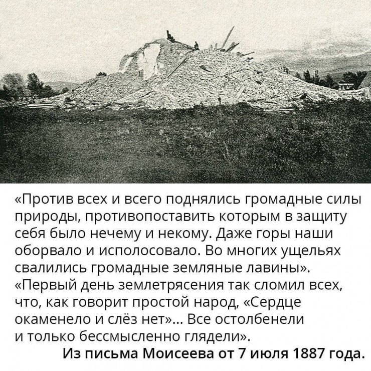 "Горожане отстаивали Верный. В одном из ходатайств сообщается: "Есть много городов, потерпевших бедствия, но они остаются на местах, где основаны. Нужно приспосабливаться к условиям, среди которых живем". Только 27 июня 1888 года власти велели оставить Верный центром. Жизнь налаживалась, но уже все понимали: это землетрясение не последнее", - подытожили авторы.⁣⁣
