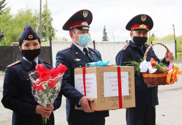 Сотрудники ДУИС привезли ветерану коробку с подарками, корзину со свежими овощами, выращенными руками осужденных в теплицах учреждения, а также вручили денежный подарок.